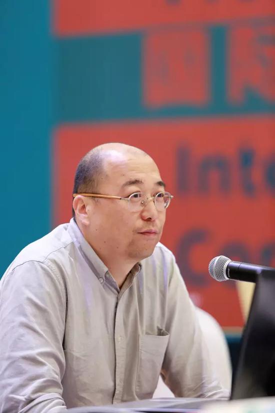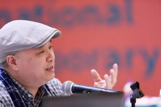 ▲西南大学美术学院艺术学教授、博士生导师邱正伦以“重返东方-本土艺术的主题性与当代性思考”为主题展开论述:中国当代艺术所处在转型期时会产生焦虑感,因此我们对待艺术文化要去追溯它的本质,对艺术不能陷入狭隘的误区。