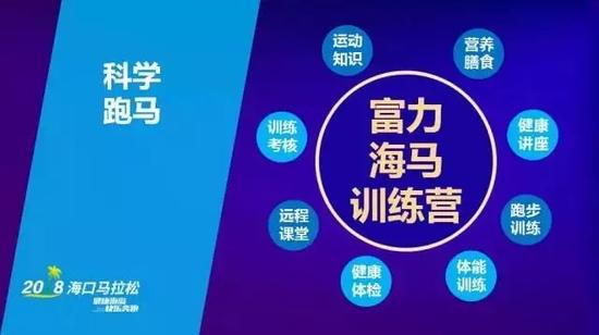 同时,海南富力在各项目组织海马训练营,邀请全国知名专业运动教练和健康管理专家,利用海南富力健康管理中心平台,让业主科学跑马。线上线下为跑者提供一系列健康运动服务,包括提供营养膳食、健康讲座、运动知识、健康体检、跑步训练、体能训练。