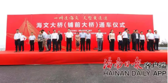 据介绍,海文大桥是我省有史以来投资规模最大、桥塔最高、跨度最长的独塔双索面钢箱梁斜拉桥,也是国内防震、抗风级别最高和唯一跨越地震活动断层的跨海大桥。作为我省重点交通项目“一桥六路”中的“一桥”,铺前大桥是“海澄文”一体化经济圈的重要交通控制性工程,也是海南自贸试验区海口江东新区的东部门户。大桥通车后,从文昌铺前到海口的路程将由原来的1个半小时缩短至20分钟。