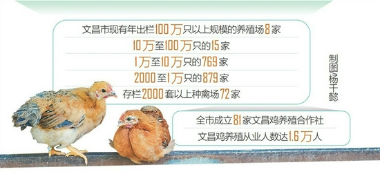 在文昌,受益于文昌鸡产业的不止林森一人。作为文昌市农业经济的支柱性产业之一,文昌鸡养殖渐成规模。“去年,全市文昌鸡饲养量达到7695万只,出栏5749万只,预计今年饲养量达到7578.99万只,年出栏5713.09万只。”文昌市农业农村局副局长朱敏说。