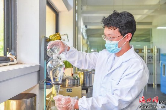 在海口江东新区留创园美浪湾香药生物公司,技术人员正在进行实验。记者 孙士杰 摄