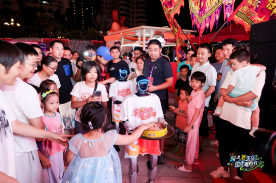 随后,备受关注的“椰小鹿”人偶将携手机器狗、智能机器人登场,带来萌趣十足的互动表演。机器狗灵活完成跳跃、转圈等动作,与“椰小鹿”人偶默契配合;智能机器人则通过语音对话、趣味问答与观众实时互动,传递中秋祝福。科技感与萌趣感的碰撞,为现场增添欢乐氛围。