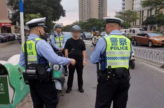 11月14日10时许,在红城湖路与兴丹路交叉口,林某祺因驾驶摩托车违反禁令标志被执勤交警发现并当场拦下。