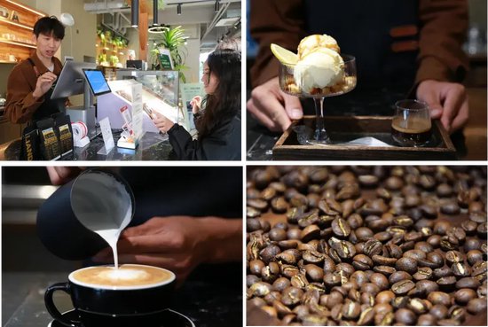 一咖啡店正在用产自云南的咖啡豆制作饮品
